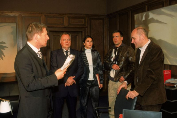 4. Staffel: v.li.: Max Gertsch als Kriminalkommissar Ralf Bongartz, Britta Schmeling als Staatsanwältin Charlotte Glaser, Henry van Lyck als Oberstaatsanwalt Gerhart Lotze und Wolfgang Bathke als Kriminalhauptkommissar Stefan Kehler +++ Die Verwendung des sendungsbezogenen Materials ist nur mit dem Hinweis und Verlinkung auf RTL+ gestattet. +++