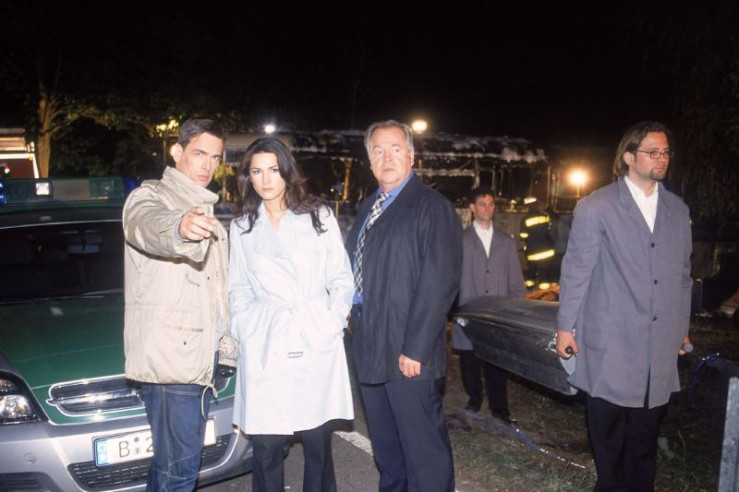 4. Staffel: v.li.: Max Gertsch als Kriminalkommissar Ralf Bongartz, Britta Schmeling als Staatsanwältin Charlotte Glaser, Henry van Lyck als Oberstaatsanwalt Gerhart Lotze und Wolfgang Bathke als Kriminalhauptkommissar Stefan Kehler