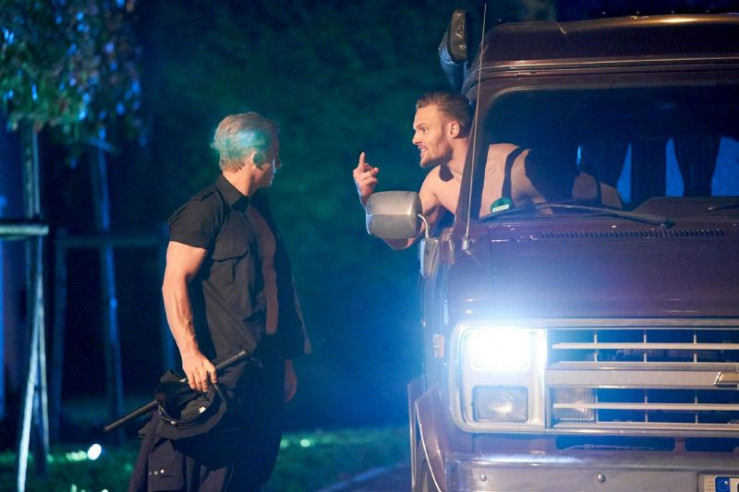 Paul (Daniel Roesner, l.) ermittelt auf eigene Faust im Fall seines ermordeten Kumpel. Undercover in einer Stripper-Truppe hat er das üble Spiel der Truppe nicht mitgemacht und wird von Robin (Robert Maaser) und seinen wütenden Kollegen zurückgelassen.