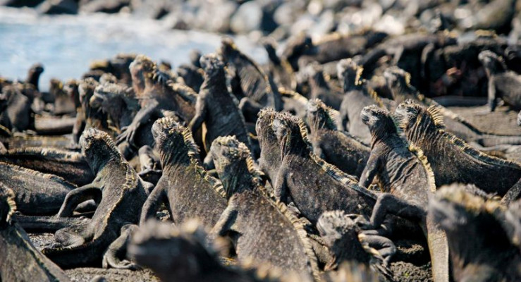 Meerechsen auf Fernadina, Galapagos - Die Meerechse kann im Meer nach Nahrung suchen, sie ist die einzige Art unter allen Echsen, die das tut.