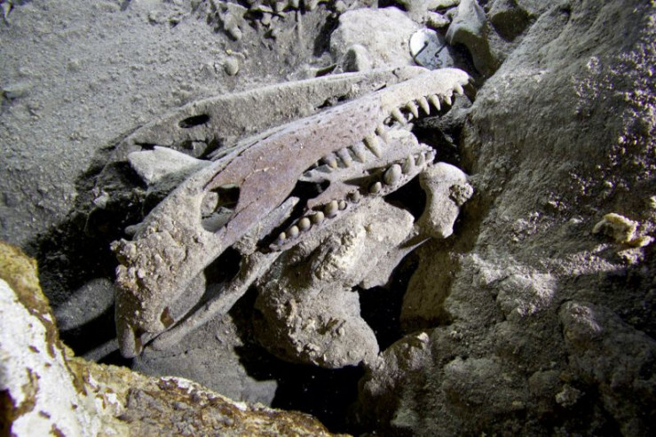Fossilien-Fund in einem "Blue Hole" auf den Bahamas: ein Krokodilschädel der Gattung Crocodylus rhombifer, der auf den Bahamas seit 4.000 Jahres ausgestorben ist