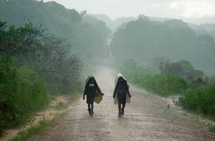 Bwambale Dan, Masereka Stuart und Muhindo Daphine (v.l.) bei ihrem Gang zur Schule: Der Weg ist beschwerlich und dauert mehrere Stunden.