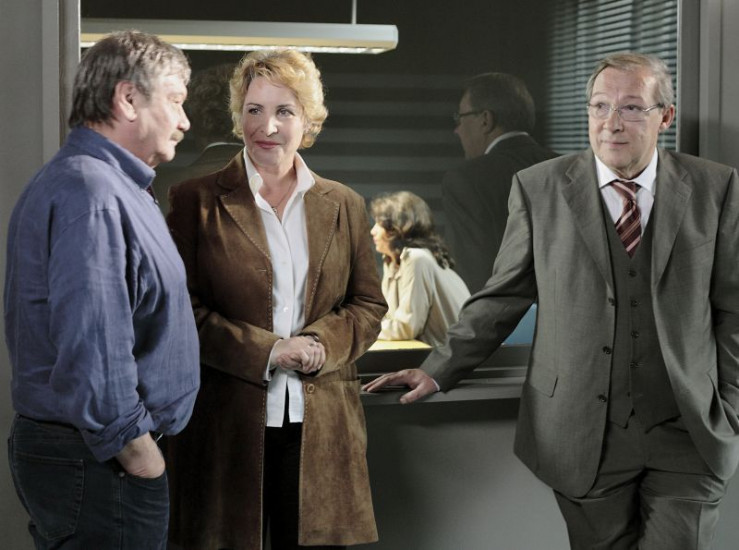 Anja Sakowski (Nadeshda Brennicke) erzählt Schmücke (Jaecki Schwarz,l.) und Schneider (Wolfgang Winkler), dass sie ein kleines Techtelmechtel mit deren ermordetem Kollegen hatte.