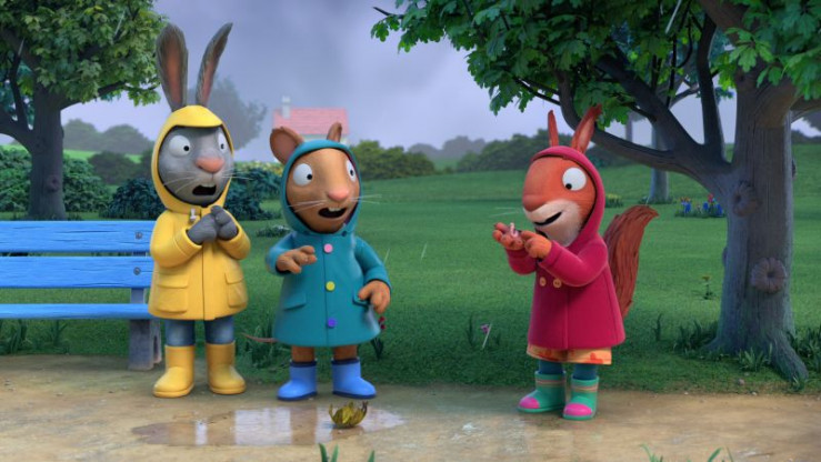 Die Pfützen sind voller Regenwürmer. Jamila möchte sie vor dem Überfahren retten, aber Pip und Posy finden die Würmer eklig. Bis Posy sich schließlich doch traut und einen Wurm anfasst.