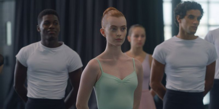 Simone (Margherita Barbieri, 3.v. r.), Finn (Zac Gabriel Werb, 2.v.r.) und Cece (Hailey Romain, r.) freuen sich, auf der Liste für das Vortanzen zu stehen.