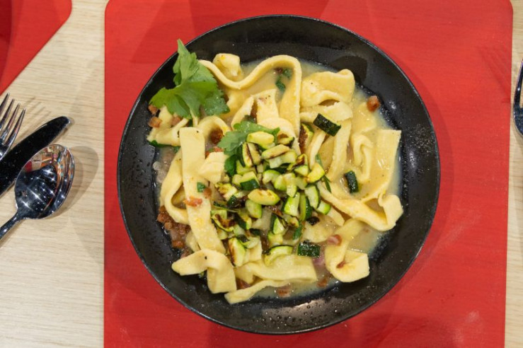 Tagesmotto "Leibgericht": Tagliatelle alla carbonora mit Zucchini-Topping von Roccco Fattizzo