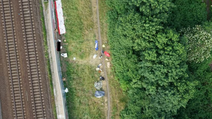 Eine Luftaufnahme zeigt den Fundort der Leiche (roter Pfeil) in Meerbusch 1992.