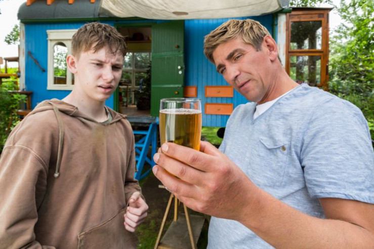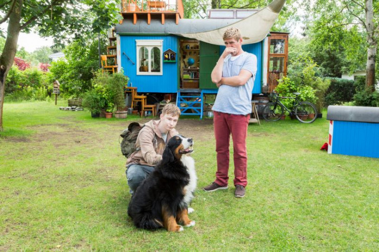 Fritz Fuchs (Guido Hammesfahr, r.) und sein Hund Keks bekommen überraschenden Besuch. Emil (Paul-Maximilian Schüller, l.), der sich seit Tagen nicht duscht, stellt Fritz auf eine harte Probe.