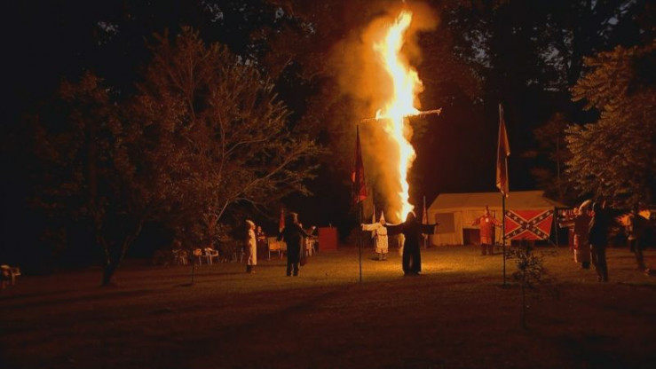 Zu den Symbolen des Ku-Klux-Klan zählt das brennende Kreuz. Mit ihm beruft sich die Organisation auf angeblich christliche Werte.