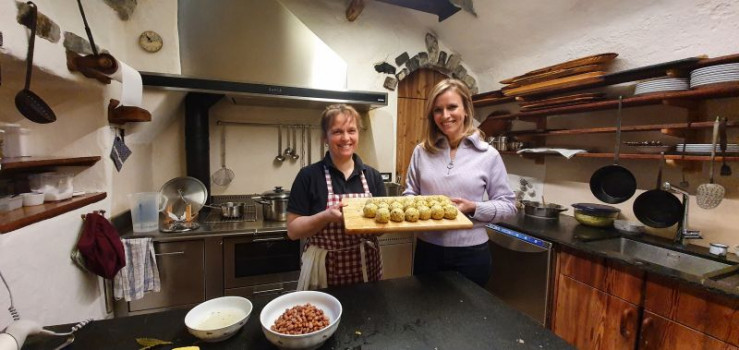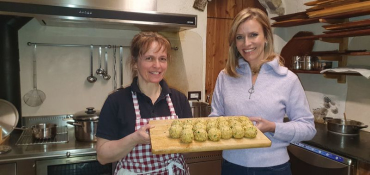 In der Werkstatt von Holzschnitzer Eric Perathoner entstehen sakrale und auch weltliche, hochmoderne Skulpturen. Trachtenexpertin Katrin Perathoner kennt sich nicht nur mit der Historie der Grödner Tracht bestens aus. Sie weiß auch viel über Details und Eigenheiten der schmucken Festtagskleidung, zu der auch die reich bestickten Goldkrönchen gehören, die Rosamunde Sorarui in aufwendiger Handarbeit fertigt. Kulinarisch verwöhnt wird die Moderatorin auf dem neu restaurierten Paratonihof, wo die Wirtsfamilie Insam Bohnen-Suppe mit Knödel serviert. Bei Armin Gasser erfährt Sonja Weissensteiner anschließend, wie Trachtenbesteck hergestellt wird.