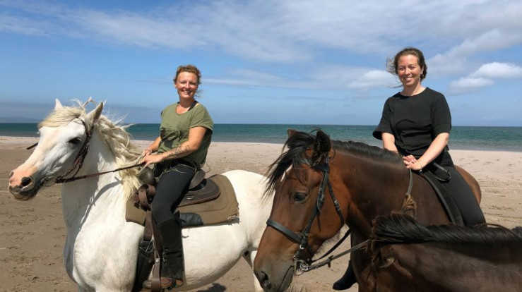 Vor einem Ausritt müssen Justine und Stephy (von links) ihre Pferde erst einfangen. Die Tiere leben im Sommer frei auf der Insel Miquelon-Langlade.