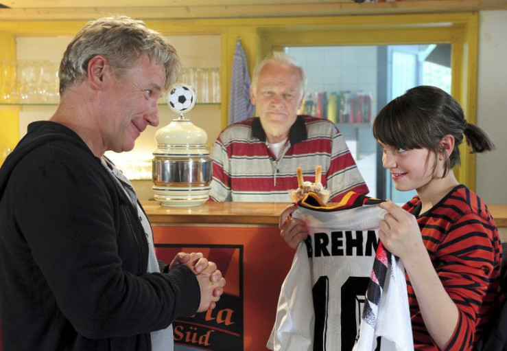 Die Fußballfreaks Alex (Jörg Schüttauf) und Charlie (Annika und Francesca Bolkart) sind sich in jedem Fall verdammt ähnlich.