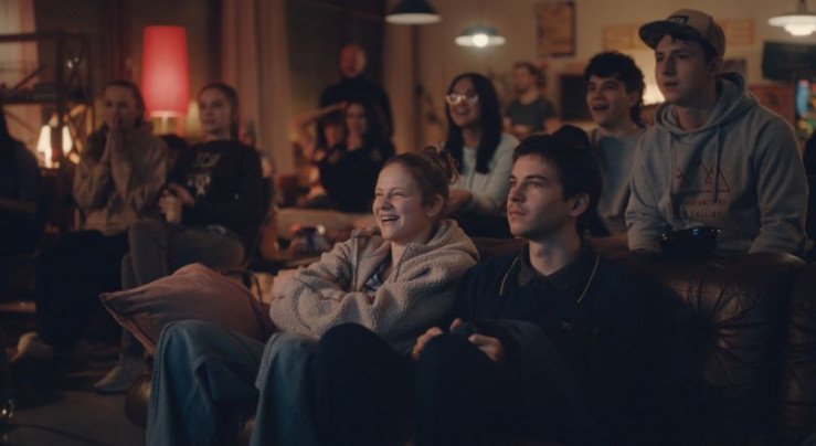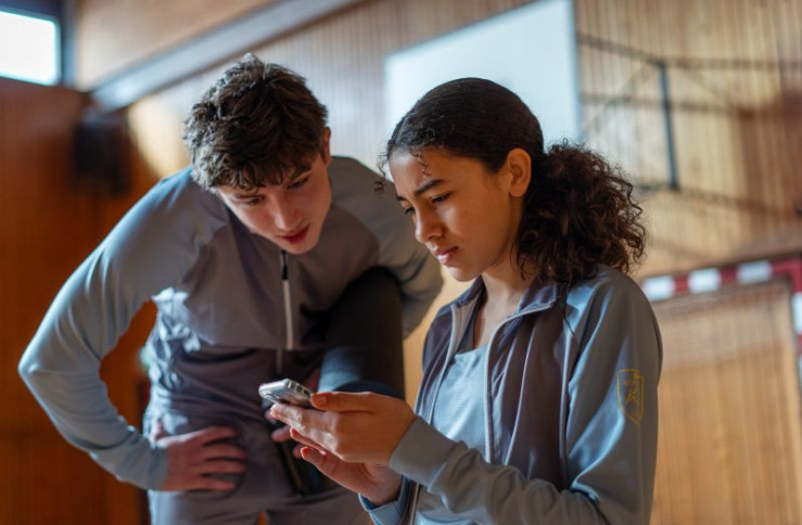 Von links: Tina (Judith Altenberger) schaut Stefan Veighofer (Simon Hatzl) kritisch an.
