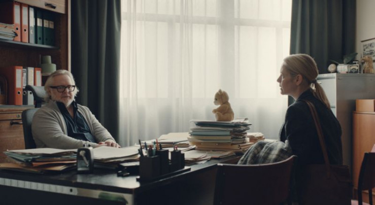 Von links: Georg Stoiber (Moritz Uhl) und Solenn Eden (Marie Theres Müller) in der Runde.