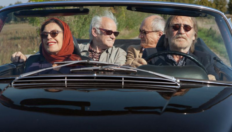 Sylva (Angela Winkler), Heinrich (Peter Franke, 2. v. li.), Edward (Dietrich Mattausch, 2. v. rw.) und Georg (Matthias Habich) machen eine Spritztour.