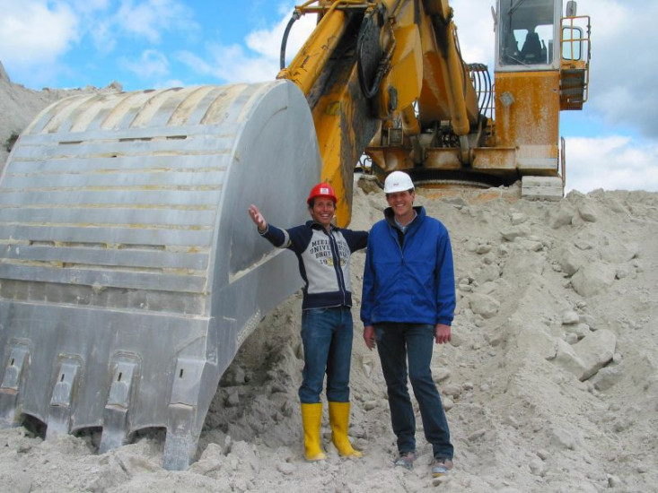 Willi (links) mit dem Geologen Alexander Braatz in einer Kaolinabbaustätte. Kaolin ist ein wichtiger Rohstoff zur Keramikherstellung.