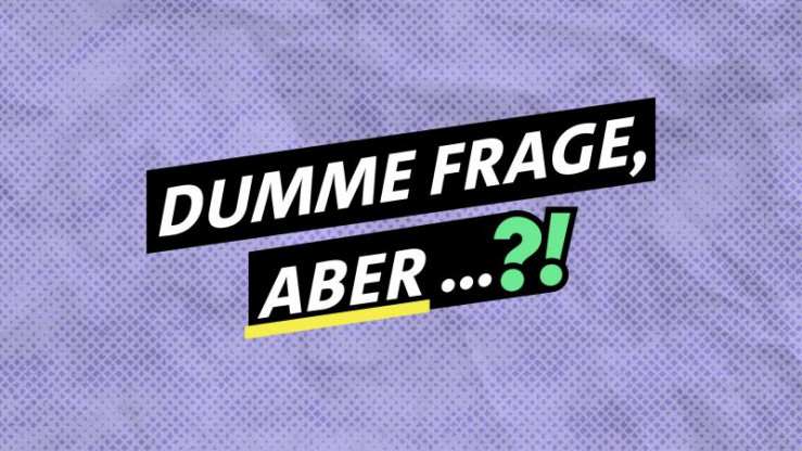Key Visual/Cover mit Typo zu "Dumme Frage, aber ...?!". Wir gehen den Fragen nach, die du dir selbst stellst, aber selten offen aussprichst. Hier gibt es keine dummen Fragen, denn jede hat eine Antwort! Du kannst die Fragen stellen, die dich bewegen. Wir zeigen: Keine Frage ist zu schwierig. Ob es um ernste Themen geht wie "Was, wenn morgen Krieg wäre - müsste ich kämpfen?" oder um alltägliche Sorgen - unsere Hosts Lilian und Minusch liefern die Antworten!
