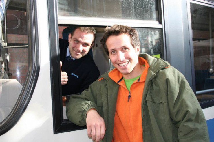 Willi darf heute Trambahn fahren. Fahrlehrer Bernhard Robl zeigt ihm, was dabei alles zu beachten ist.