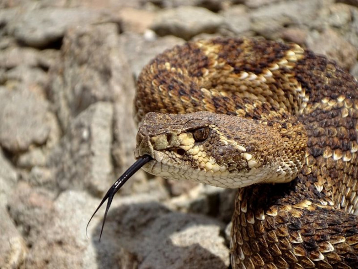 Westliche Diamondback-Klapperschlange (Crotalus Atrox) - Zungenschlag.