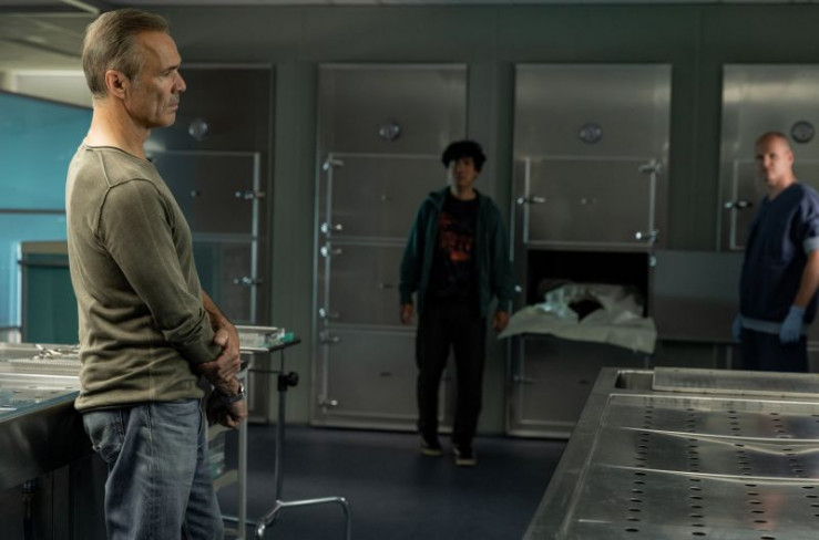 Pollack (Hannes Jaenicke, li.) und Joyo (Vietha Luong, Mitte hinten) in der Gerichtsmedizin.
