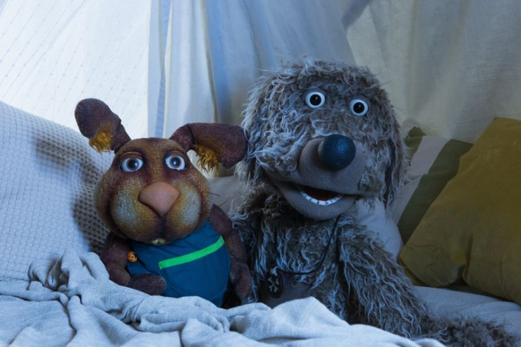 Otto (Franziska Rattay) und Buffo (Ulli Voland) haben es sich in der Kuschelecke gemütlich gemacht. Sie schauen sich zusammen die Geschichte Mishou an.