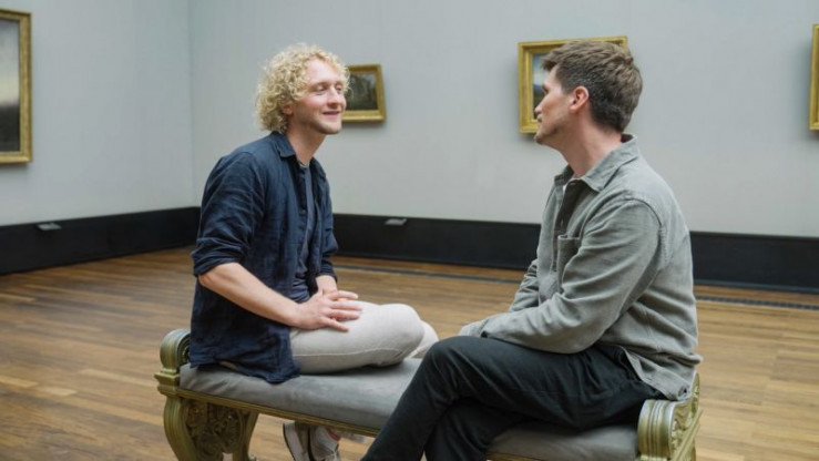 Frank (r.) trifft auch den Philosophen und Autor Christian Uhle (l.), mit dem er über Lebenssinnsuche in der Gen Y und Z spricht.