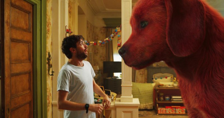 Emily (Darby Camp) und Casey (Jack Whitehall) mit Clifford, dem großen roten Hund +++ Die Verwendung des sendungsbezogenen Materials ist nur mit dem Hinweis und Verlinkung auf RTL+ gestattet. +++