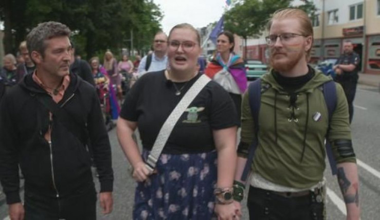 Reporter Nicholas Körber (l.) mit Marie und Michael auf dem CSD.