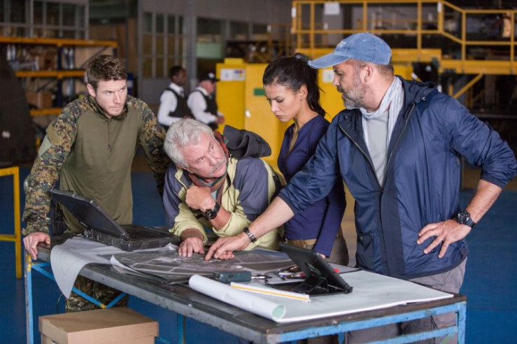 V.l.: Brandon Beckett (Chad Michael Collins), Thomas Beckett (Tom Berenger), Kate Estrada (Danay Garcia), Richard Miller (Billy Zane)