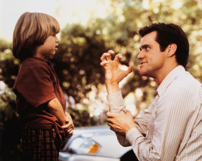 Papa Fletcher (Jim Carrey) verspricht seinem Sohn Max (Justin Cooper) das Blaue vom Himmel!