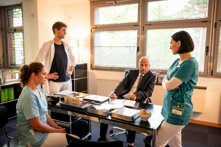 Nora (Mimi Fiedler, r.) ist entsetzt als Ella (Ines Quermann, l.) unerlaubt den OP-Saal betritt. +++ Die Verwendung des sendungsbezogenen Materials ist nur mit dem Hinweis und Verlinkung auf RTL+ gestattet. +++