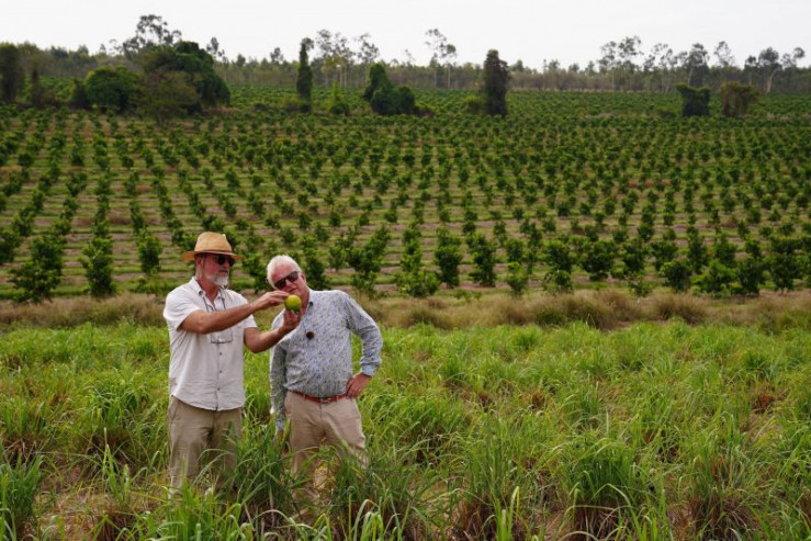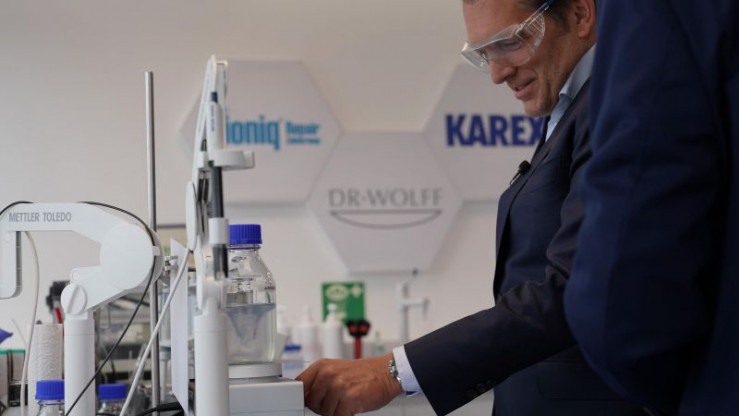 Tillmann Miritz (r.) erklärt Ministerpräsident Mario Voigt die Produktionsabläufe am PC in der Leitstelle. +++ Die Verwendung des sendungsbezogenen Materials ist nur mit dem Hinweis und Verlinkung auf RTL+ gestattet. +++