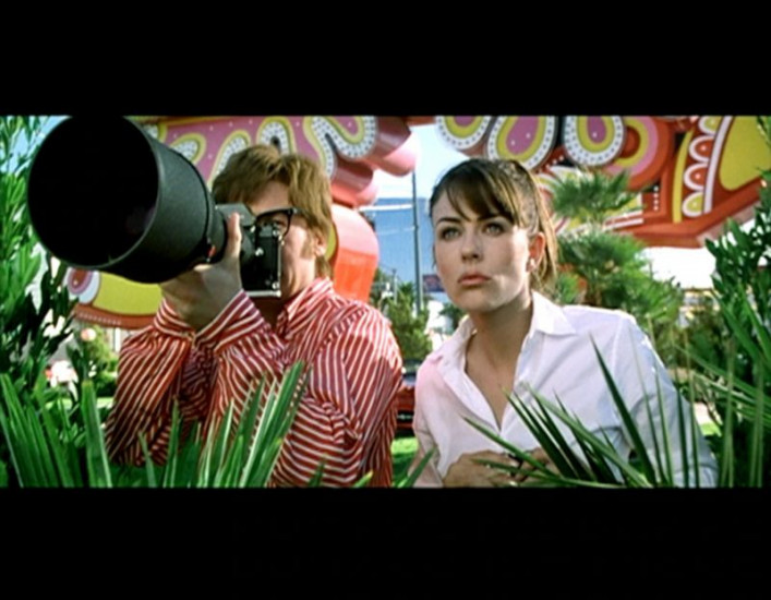 Austin Powers (Michael Myers) und Vanessa Kensington (Liz Hurley) observieren den bösen Dr. Evil..