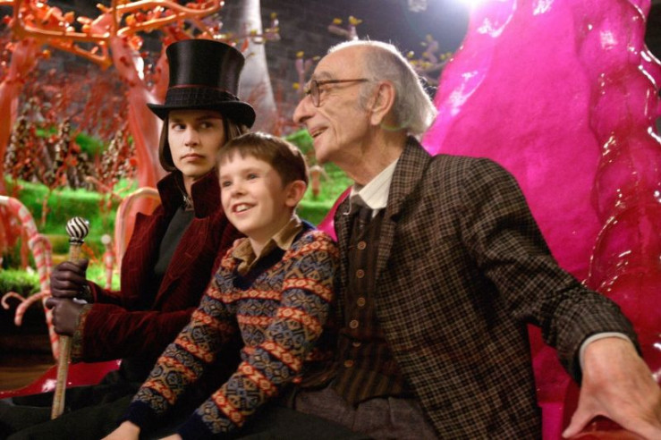 Der kleine Charlie (Freddie Highmore) und sein Großvater (David Kelly) haben viel Spaß in der Schokoladenfabrik von Willy Wonka (Johnny Depp)