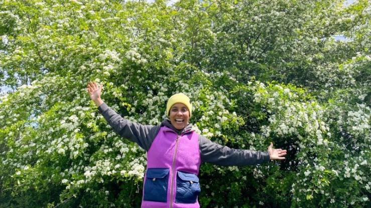 Pia erkundet den Lebensraum Hecke.