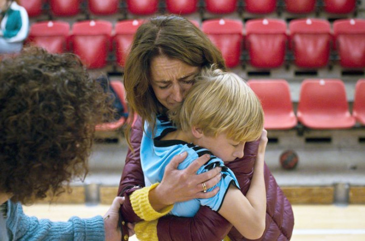 Seine Pflegemutter Dorte (Lone Rødbroe, li.) begleitet Theo (Noah Storm Otto, re.) zum Fußballtraining. Dort taucht entgegen der Anweisungen des Jugendamtes seine leibliche Mutter Dea (Christine Albeck Børge, Mi.) auf.