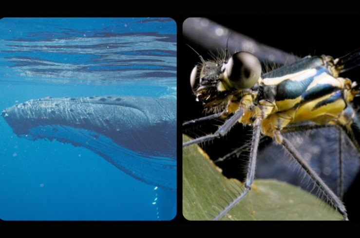 Überraschende Vielfalt des Lebens: ein riesiger Wal gegenüber einem winzig kleinen Insekt.