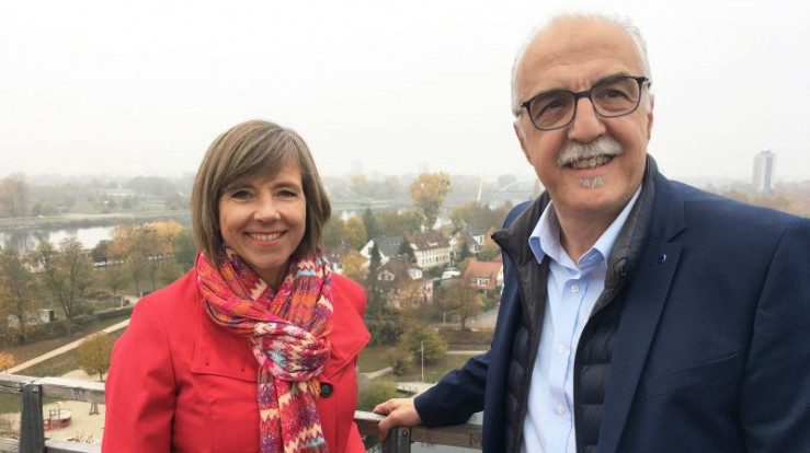 Annette Krause mit dem Straßburger Star-Kabarettist Roger Siffer.