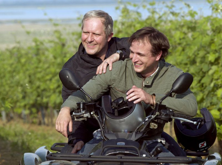 Thomas (Harald Krassnitzer, l.) und sein Sohn Paul (Achim Schelhas, r.) haben sich wieder versöhnt und haben viel Spaß miteinander. Weiteres Bildmaterial finden Sie unter www.br-foto.de.
