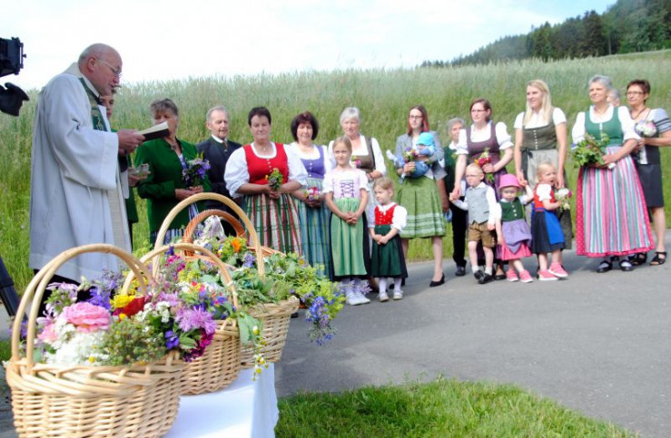 Das Leben in den Bergen kann beglückend sein, wenn die Arbeit getan ist und sich ein Sonnenuntergang über dem Alpenkamm abzeichnet. Es kann aber auch entbehrungsreich und hart sein, wenn in dem kargen Land Wind und Wetter das Sagen haben. So ist es auch heute noch in den höheren Regionen, die das Murtal einsäumen. Matthias und Stephanie Ninaus porträtieren die Gemeinden St. Wolfgang am Zirbitzkogel, Perchau, Hohentauern, Krakau und Pusterwald. Ihre Einwohnerinnen und Einwohner haben sich bewusst gegen den städtischen Komfort und für die Herausforderungen der Seehöhe entschieden und fühlen sich dafür jeden Tag belohnt. Im Bild: Kräutersegnung in Perchau, Steiermark.