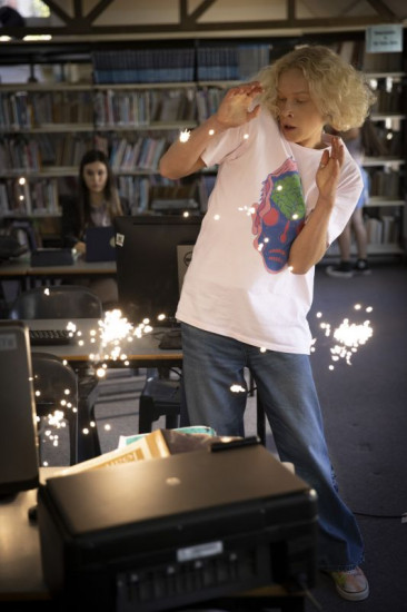 Von links: Mapplethorpe (Stacy Clausen) und seine Mutter Felicity (Alexandra Schepsi) nehmen ein Selfie auf.