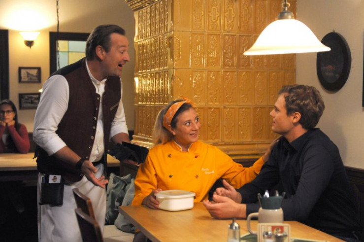 Mike (Harry Blank, rechts) bittet Joseph (Michael Vogtmann, links) um Hilfe für Annalena zu kochen. Weiteres Bildmaterial finden Sie unter www.br-foto.de.