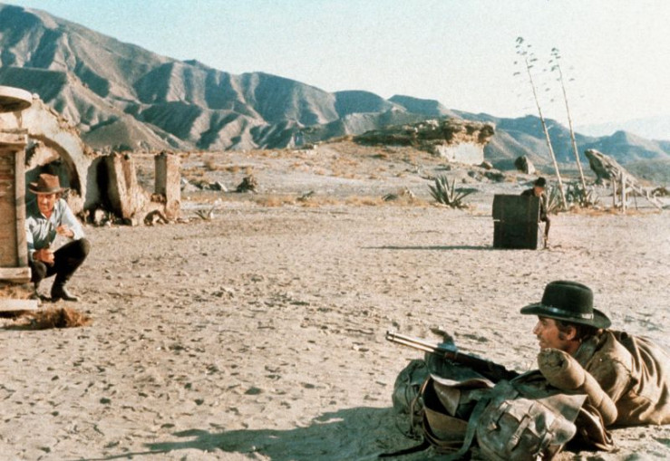 Die Goldsucher Manolo (George Hilton, rechts), "der Blonde" (Klaus Kinski, Mitte) und Mason (Gilbert Roland) setzen sich gegen unliebsame Begleitung zur Wehr.