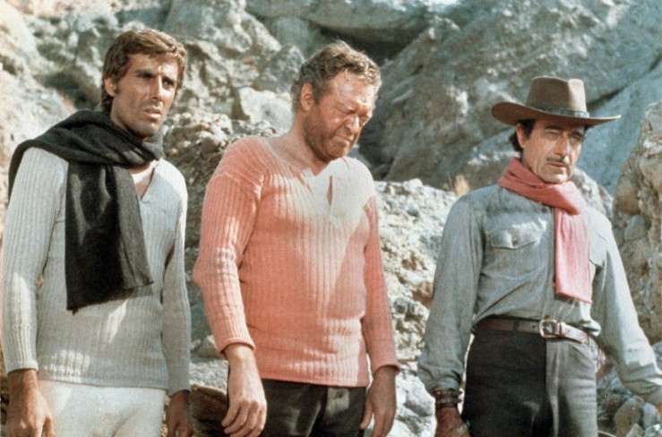 Die Goldsucher Sam Cooper (Van Heflin, Mitte) misstraut seinen beiden Gehilfen Manolo (George Hilton, li.), Mason (Gilbert Roland). Weiteres Bildmaterial finden Sie unter www.br-foto.de.