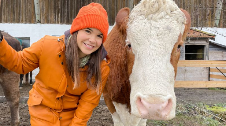 Anna hat gerade den Stall ausgemistet - zur Freude von Kuh Katja. Weiteres Bildmaterial finden Sie unter www.br-foto.de.