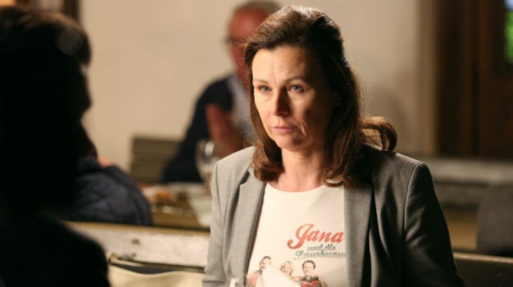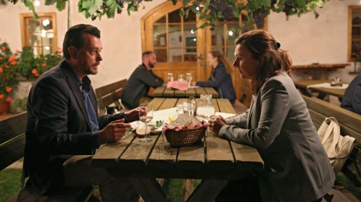 Nicole Sturm (Bettina Mittendorfer) und Kommissar Bergmann (Hary Prinz, re.) treffen sich.