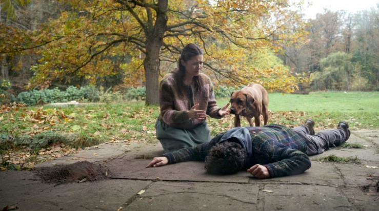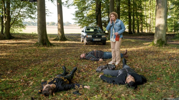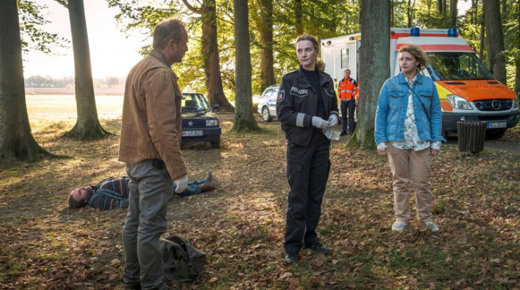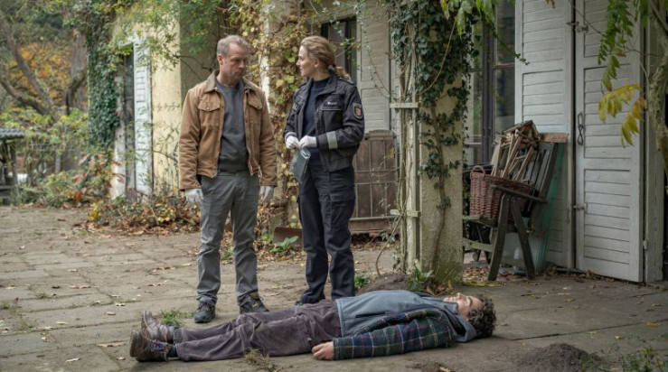 Marie Hansen (Anne Zander) findet ihren Ehemann Moritz (Pascal Houdos) tot vor der Haustür.