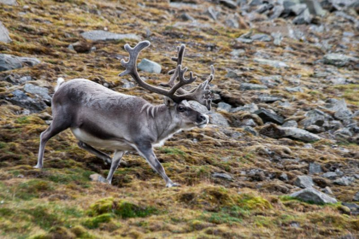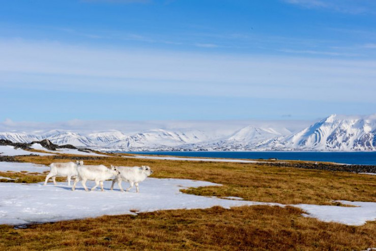 Im Frühling suchen die Rentiere oft die restlichen Schneetaschen auf, um sich abzukühlen.