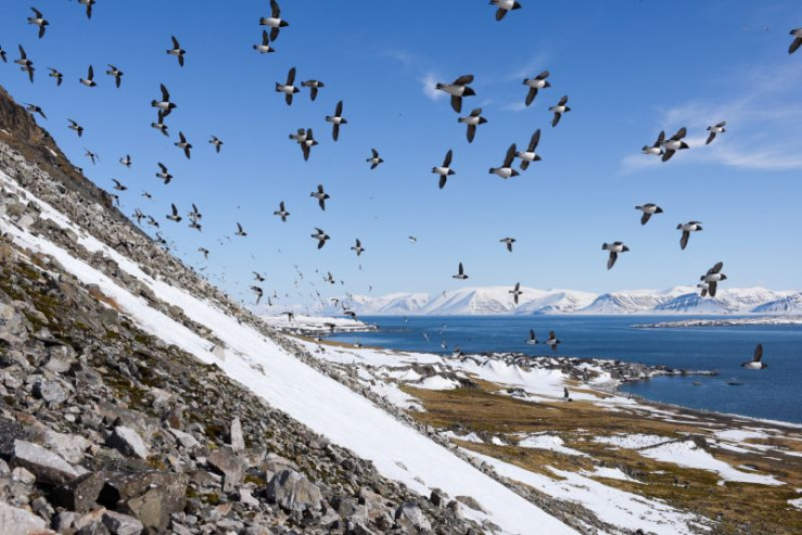 Gänse, Alke und Seeschwalben kommen aus dem Süden, um im kurzen Arktischen Sommer, in dem die Sonne nicht untergeht, rasch zu brüten und ihre Küken großzuziehen, während ihrer Eisschollen beraubte Eisbären zu Nesträubern werden, und die Polarfüchse - jetzt im erdfarbenen Tarnkleid - ihren Nachwuchs mit den Verlierern des großen Wettlaufs füttern.