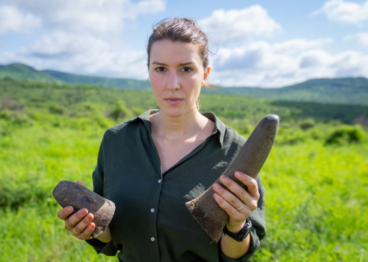 ZDF-Wildtierärztin Hannah Emde unterstützt die Forschenden bei der Beringung eines Kronenadler -Kükens. Sie erforschen die Bewegungsmuster der Vögel. Mit dem Ring kann der Vogel überall wieder erkannt werden.